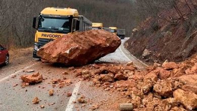Odron na putu kod Foče: Ogromna stijena zakačila kamion (FOTO)