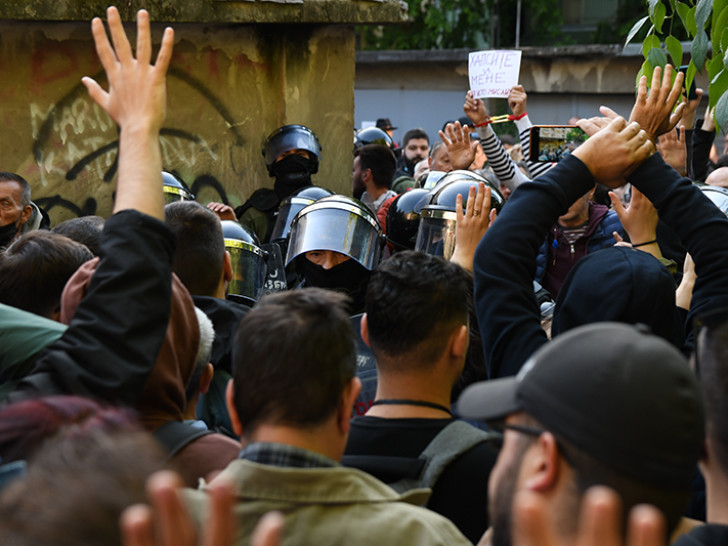 Žandarmerija ispred zgrade suda u Novom Sadu, došlo do naguravanja
