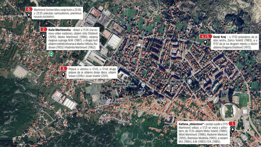 Navodeći da su policajci u 17.39 sati stigli do prvog lica mjesta – kafane “Velestovo”, Šćepanović je objasnio da im je šest minuta nakon toga prijavljeno da je u izvršeno ubistvo u naselju Humci, a minut kasnije i da su ubijena braća Vuletić – devetogodišnji Vukan i njegov pet godina stariji brat Jovan. Njih dvojica najmlađe su nedužne žrtve masovnog ubice Aca Martinovića.