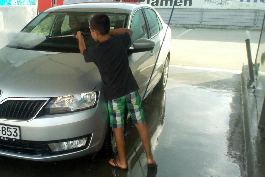 Poslije nastave, ispisanih domaćih zadataka i naučenih lekcija, Nemanja Žmirić učenik trećeg razreda Osnovne škole “Danilo Borković” u Gradiški, pomaže ženama, starcima i ostalim vozačima u obližnjoj autopraonici da što bolje urede svoja vozila.