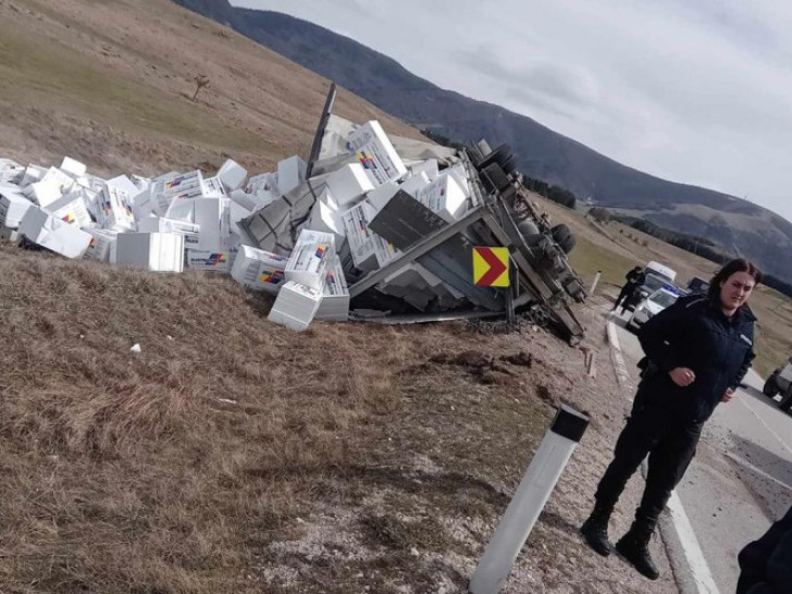 Usljed jakih udara vjetra, na Kupresu se danas prevrnuo kamion, koji je prevozio stiropor.