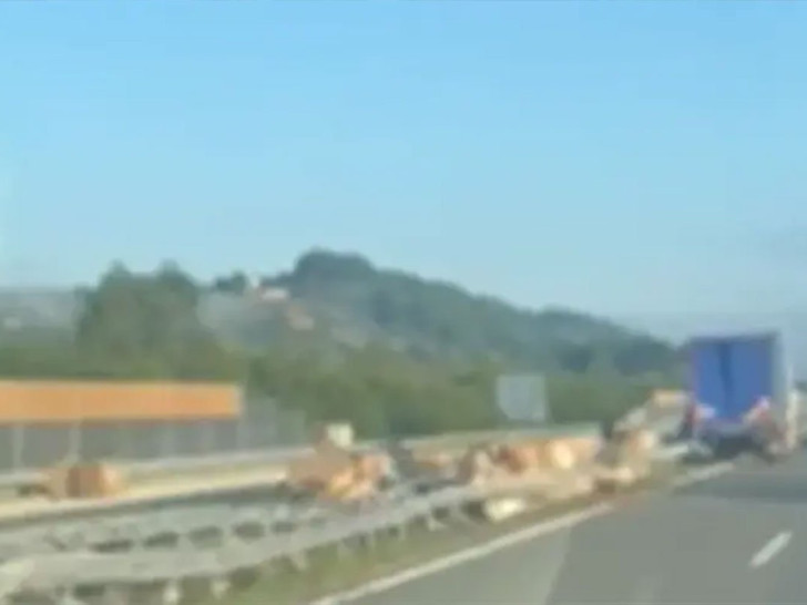 Nezgoda na auto-putu “9. januar”: Prosuo se teret iz kamiona (VIDEO)