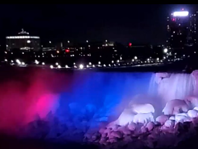 Na Sretenje, u čast Dana državnosti Srbije, jedna od najvećih svjetskih prirodnih atrakcija, Nijagarini vodopadi u Kanadi, zasijali su bojama srpske trobojke.