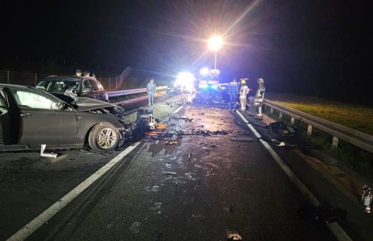 "Putničkim vozilom austrijskih registarskih oznaka upravljao je 42-godišnji državljanin Slovenije, krećući se u pravcu juga. Na mjestu gdje je bila iscrtana puna linija za razdvajanje saobraćajnih traka, započeo je nepropisno preticanje, prelaskom u traku namijenjenu za vozila iz suprotnog smjera. Tom prilikom je došlo do direktnog sudara sa putničkim vozilom zagrebačkih registarskih oznaka, kojim je iz suprotnog smjera upravljao 40-godišnji državljanin Hrvatske. Nakon toga, usljed nekontrolisanog kretanja, vozilo austrijskih oznaka je prvo udarilo u vozilo slovenskih registarskih oznaka, kojim je takođe u pravcu juga upravljao 23-godišnji državljanin Bosne i Hercegovine. Od jačine udara to vozilo je odbačeno u metalnu zaštitnu ogradu, zatim na kolovoz državnog puta, a potom i u još jedno vozilo slovenskih registarskih oznaka, kojim je, takođe u pravcu juga, upravljao 27-godišnji državljanin Bosne i Hercegovine. U ovoj saobraćajnoj nesreći, vozač vozila austrijskih oznaka (42) i vozač zagrebačkog vozila (40) poginuli su na licu mjesta. Putnici iz zagrebačkog vozila — 35-godišnji i 31-godišnji državljani Hrvatske — zadobili su teške tjelesne povrede, dok je 27-godišnji putnik iz istog vozila zadobio povrede opasne po život. Naknadnu ljekarsku pomoć zatražila je i 16-godišnja državljanka Slovenije, koja se nalazila kao putnik u vozilu austrijskih registarskih oznaka", navela je policija u saopštenju, prenosi Telegraf.