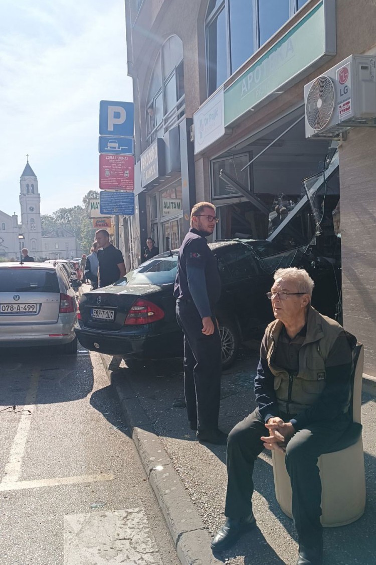 U centru Brčkog u Ulici Miroslava Krleže danas oko 11 časova dogodila se nesvakidašnja saobraćajna nezgoda kada je vozač automobilom uletio u apoteku.