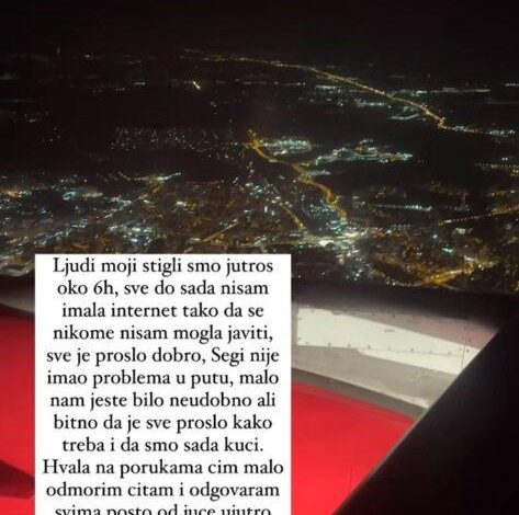 “Sve je prošlo dobro. Segi nije imao problema u putu, malo nam jeste bilo neudobno, ali bitno je da je sve prošlo kako treba i da smo sada kući”, napisala je ona.