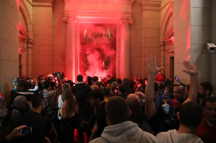 Iako je većina demonstranata mirno učestvovala u protestima bez incidenata, sve je eskaliralo kada je razularena masa u nekoliko navrata pokušavala da nasilno uđe u Skupštinu, u čemu su u jednom trenutku i uspjeli, ali ih je policija izbacila.