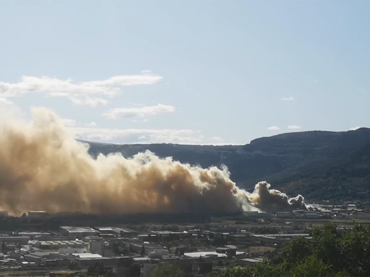 Usljed požara, ogroman oblak gustog dima nošen jakim vjetrom širi se južnom zonom grada.