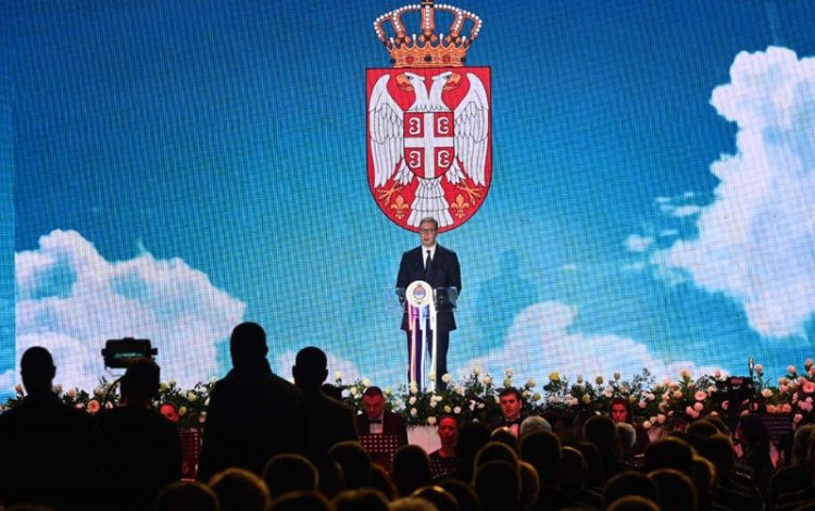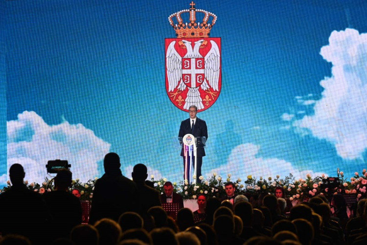 Predsjednik Srbije Aleksandar Vučić obraća se na svečanoj Akademiji povodom Sretenja – Dana državnosti Republike Srbije i Dana državnosti Republike Srpske.